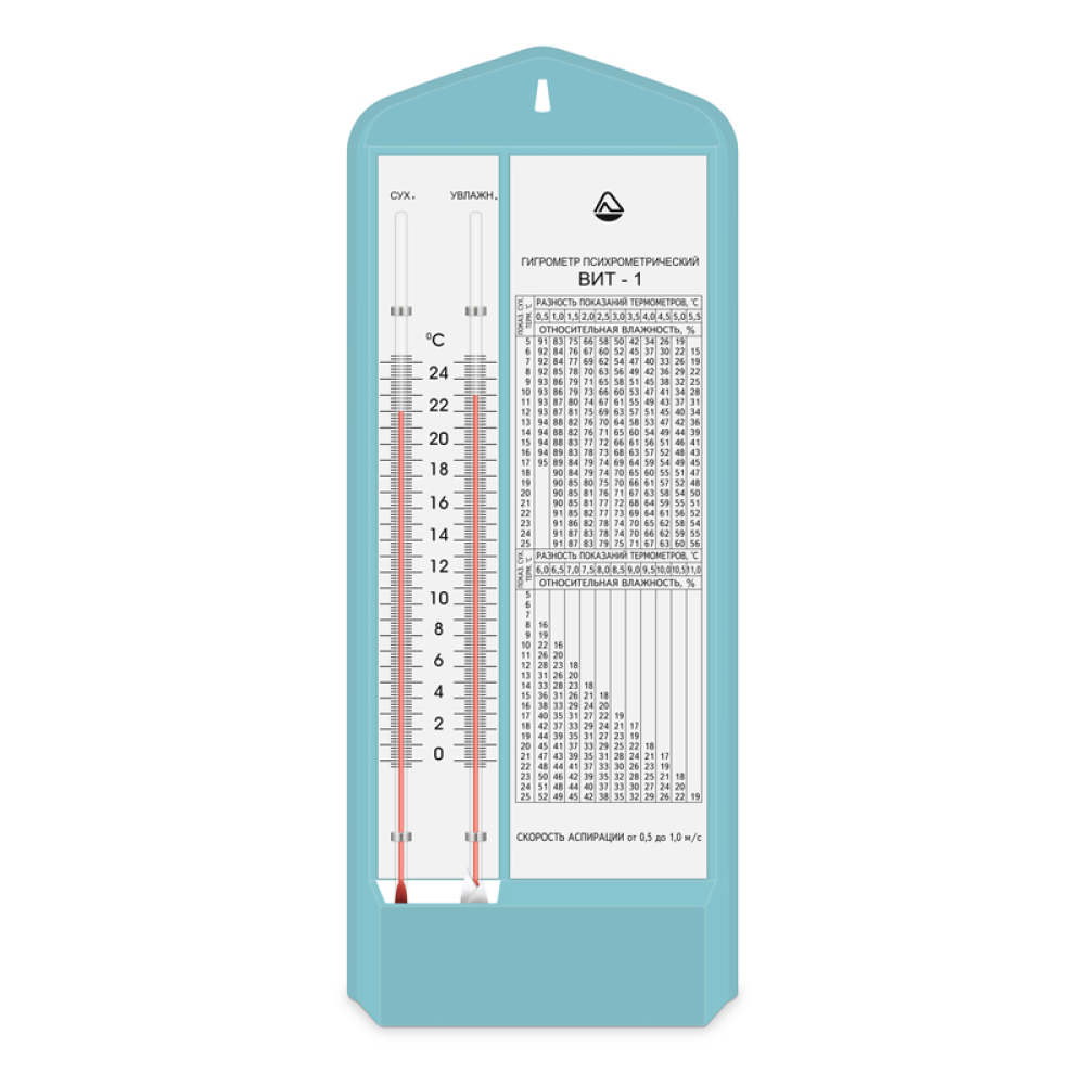 Гигрометры психрометрические ВИТ-1 и ВИТ-2 состоят из пластмассовой основы к которой крепятся два термометра со шкалой, психрометрическая таблица, стеклянный питатель. Резервуар термометра с надписью "Увлажнённый", увлажняется водой из питателя с помощью марлевого гнёта.