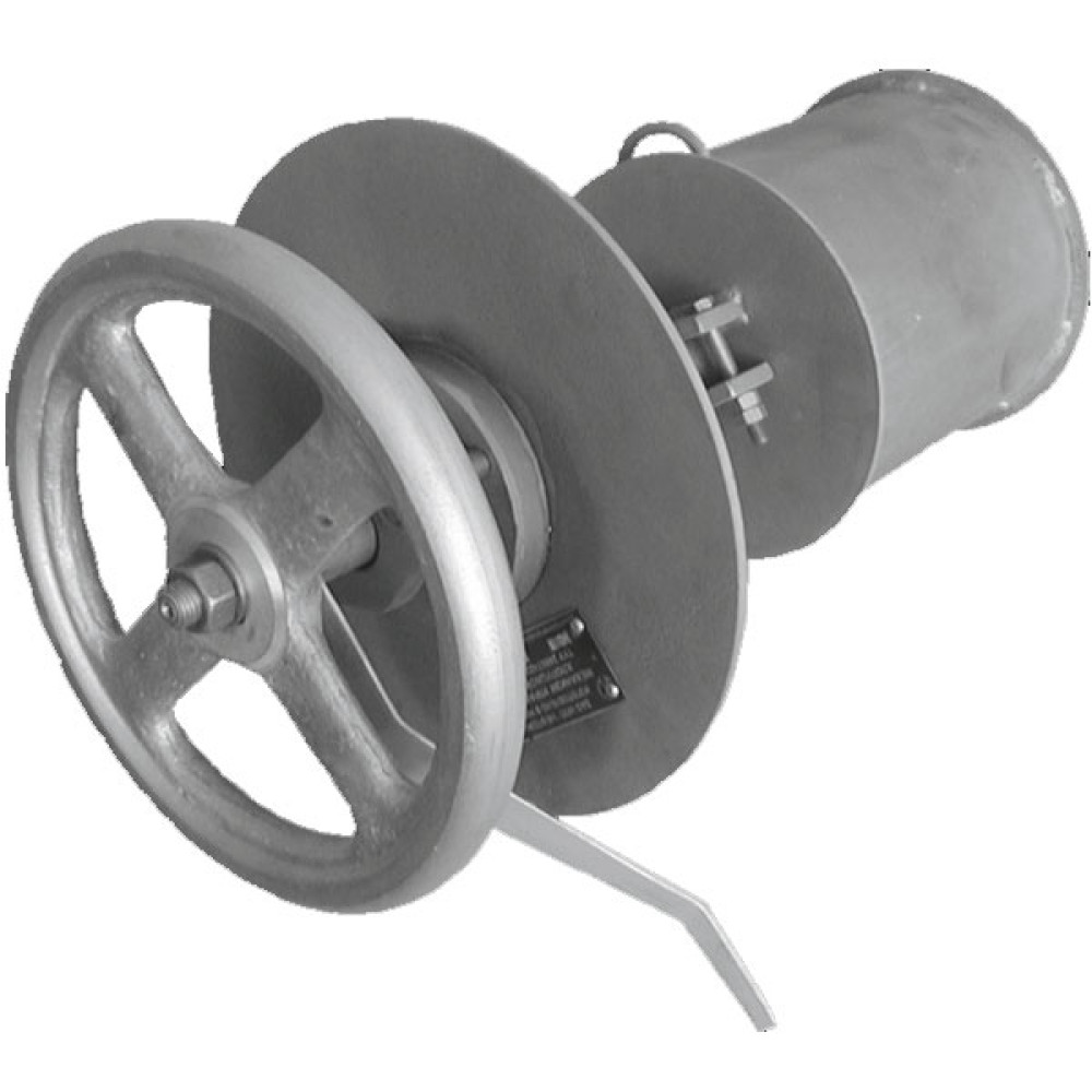Корпус механизма управления с барабаном и тросом расположены внутри, а приводное устройство (штурвал) с наружной стороны резервуара.
