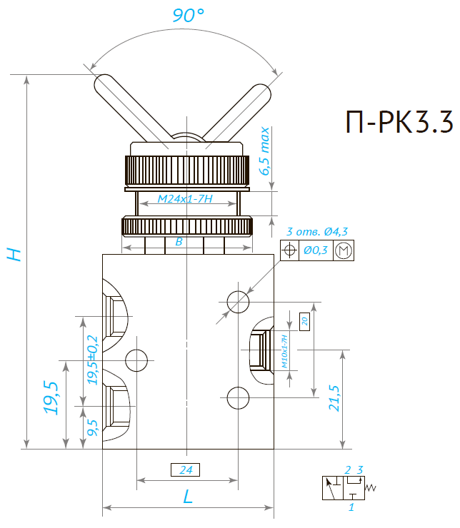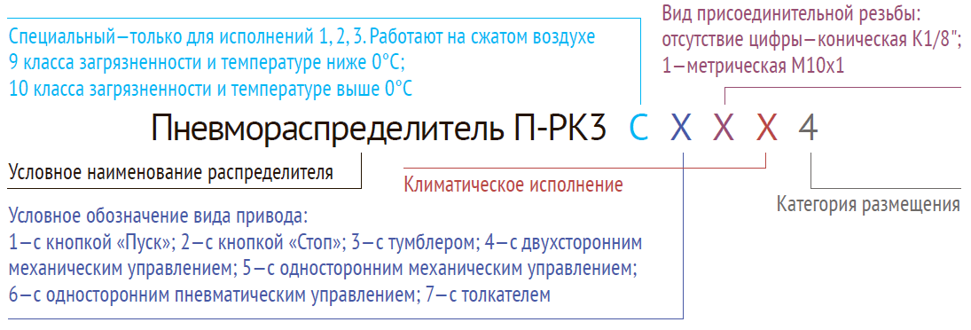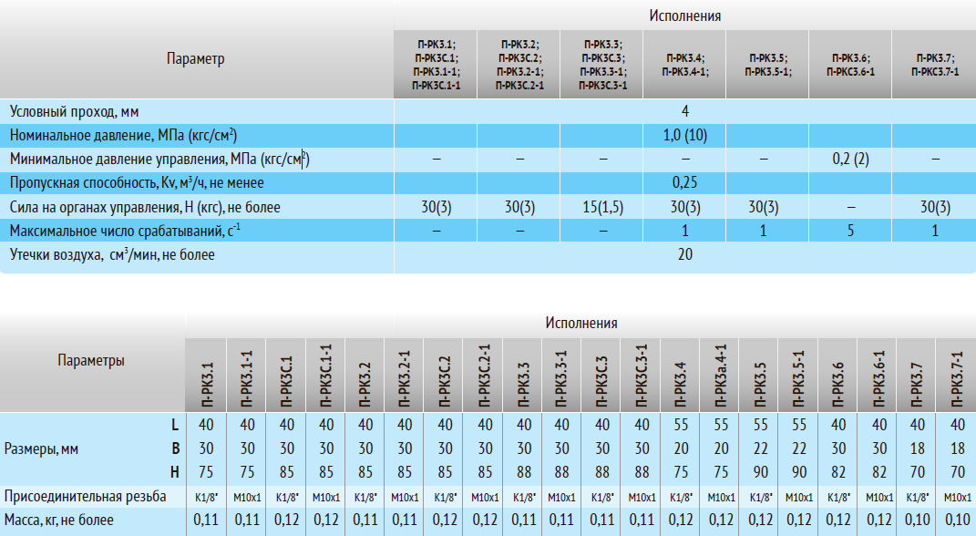Пневмораспределители типа П-РК3 двухпозиционные, трехлинейные, нормально закрытые, клапанные распределители с ручным, механическим и пневматическим управлением.