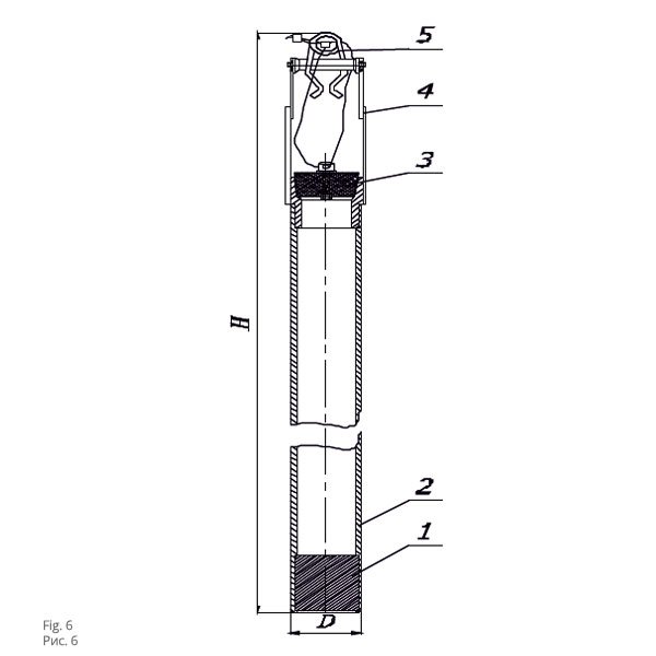 Рис.1. ПП-1. 1-груз, 2-труба заборная, 3-корпус, 4-крышка, 5-пробка. Рис.2. ПП-2. 1-пробка , 2-наконечник, 3-шток, 4-корпус, 5-крышка.