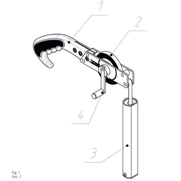 1-ручка, 2-лента, 3-груз, 4-вороток.