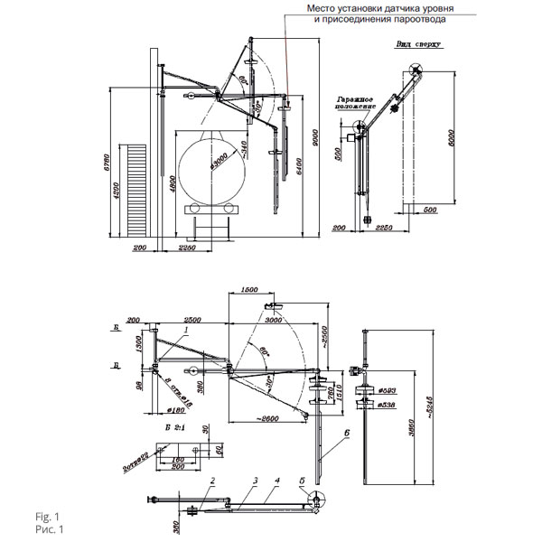 Высота подъема и опускания, габаритные размеры, углы поворота и другие размеры приведены на рис. 1.