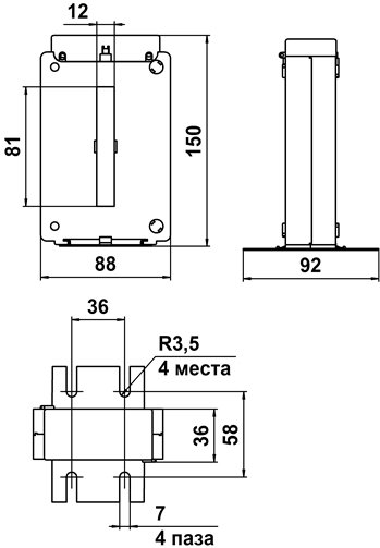 Крепление трансформаторов тока возможно при помощи основания и пружины, которые входят в комплект поставки либо при помощи DIN-рейки, поставляемой по отдельному заказу.