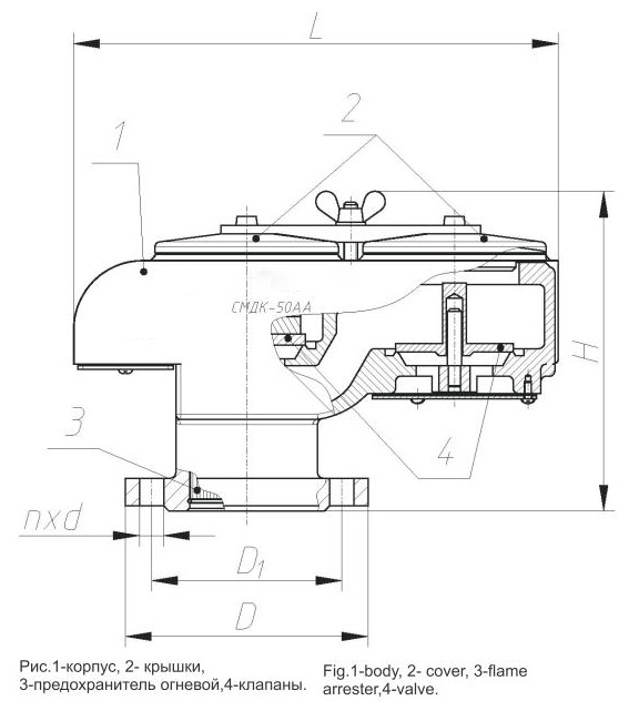 Клапан СМДК - Суміщений механічний дихальний клапан пропонується підприємством ТОВ "ФІРМА КОНТРАГЕНТ" в наступних виконаннях: СМДК - 50, СМДК-100, СМДК - 150. Дихальний клапан СМДК необхідний при закачуванні і викачування нафтопродуктів в/з вертикальних резервуарів для нормалізації тиску газового простору (парів).