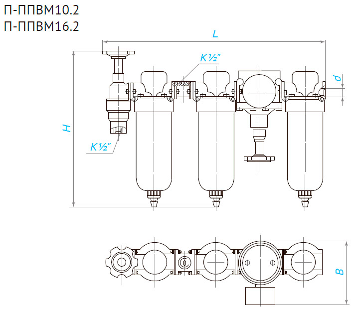 Устройство очистки сжатого воздуха П-ППВМ предназначено для подготовки сжатого воздуха в пневматических системах и пневмоприводах с повышенными требованиями к очистке воздуха (газостатические подшипники, шлифовальные станки, порошковая покраска)